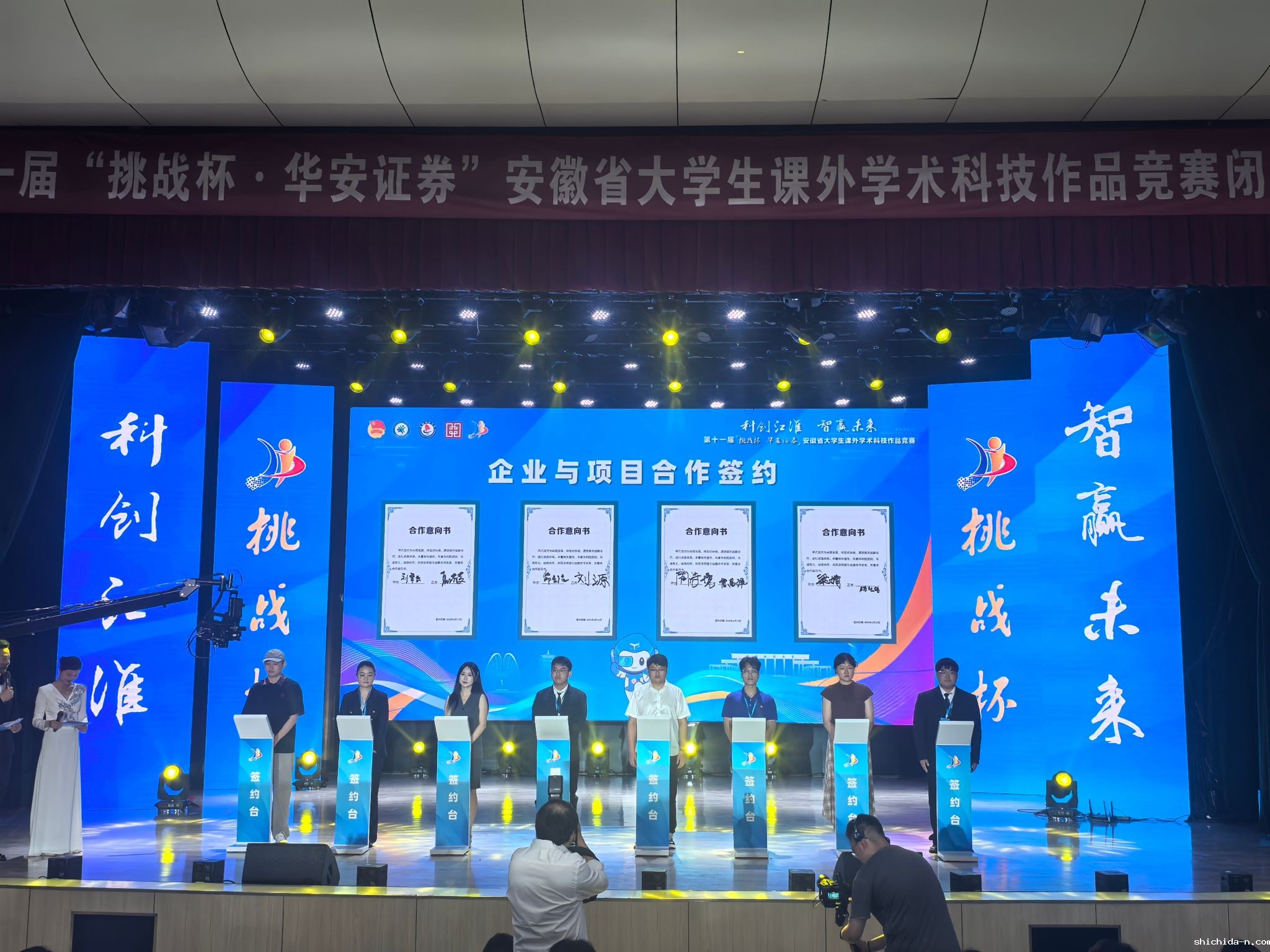 6月10日至12日,第十一届“挑战杯”安徽省大学生课外学术科技作品竞赛落下帷幕。我校推报作品荣获一等奖5项、二等奖6项,团体总分进入本科高校前十,时隔8年重夺“优胜杯”。省赛入围数量、省级一等奖数量均创新高,实现我校在该项赛事的历史最佳成绩。闭幕式上,我校作品《AR50超效速凝海绵——高端可吸收止血材料领航者》,与我省某生物科技企业现场签署合作协议,顺利打通作品通过赛事培育向成果转化的“最后一公里”。