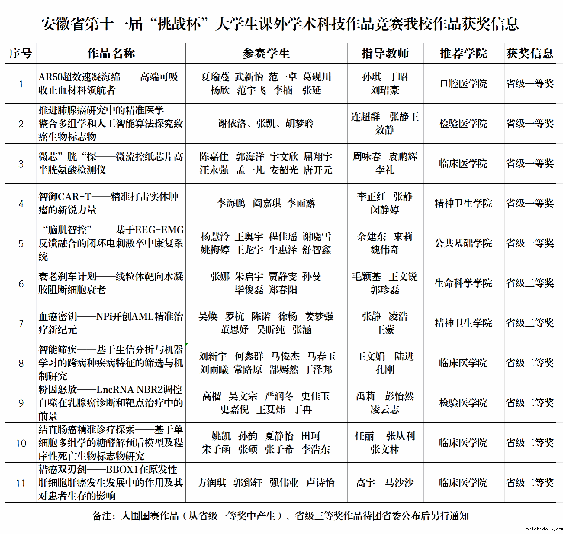 我校在第十一届“挑战杯”安徽省大学生课外学术科技作品竞赛中取得历史性突破